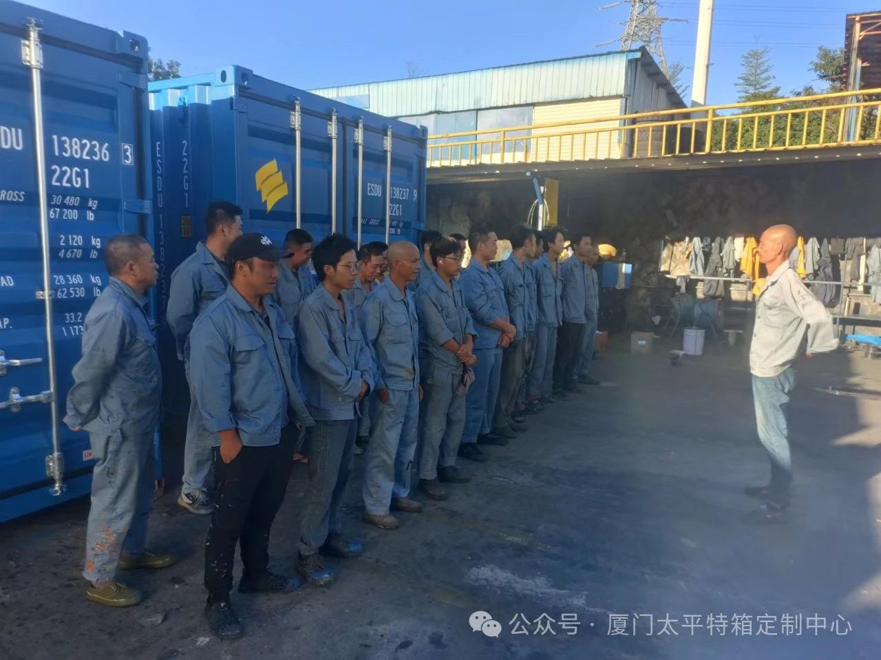 2024年開始不斷提產(chǎn),堆場空間緊張情況下,他總是會提前做好修箱工作的策劃,確保每天下線的箱子能夠及時周轉(zhuǎn)。在工作中把控好質(zhì)量最后關(guān)卡,及時反饋箱東及線上發(fā)現(xiàn)的各種問題,下線后的箱子出現(xiàn)質(zhì)量問題他總是第一時間去修復(fù)、修補、帶領(lǐng)團隊把每一個細節(jié)都做到位,他一遍遍交待產(chǎn)品質(zhì)量是廈門太平的標桿,我們要把好最后一道關(guān)。有時候半夜突然下雨,他都跑來公司關(guān)箱門,生怕淋雨后影響第二天的收箱工作。遇到修箱量大、繁忙的時候,馬不停蹄的加班加點;遇到夏日炎炎,他們不能退縮,帶領(lǐng)團隊完成修箱任務(wù),他們的努力和付出,使堆場修箱有序且高效地完成。他們是行業(yè)中可敬的人。